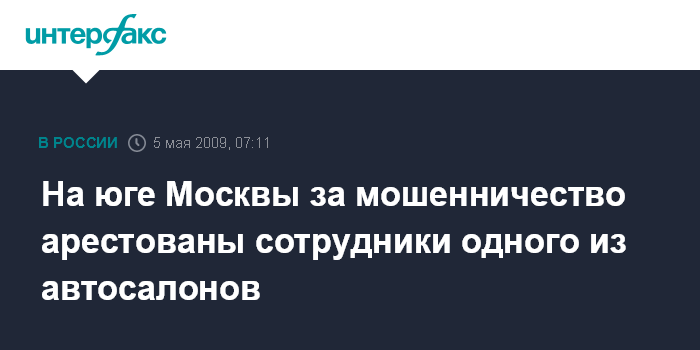 Москва. 5 мая. ИНТЕРФАКС-МОСКВА - В Москве решением суда за мошенничество арестованы четыре сотрудника автосалона, расположенного на территории Южного административного округа.