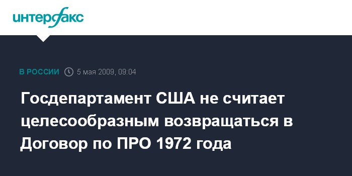 Госдепартамент США не считает целесообразным возвращаться в Договор по ПРО 1972 года