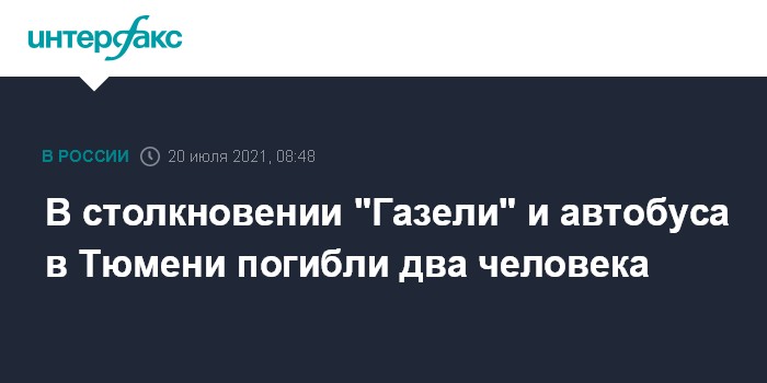 Москва. 20 июля. INTERFAX.RU - В Тюмени в ночь на вторник столкнулись рейсовый автобус маршрута №11 и "Газель", погибли два человека, еще трое получили травмы, сообщили в областном управлении ГИБДД. Возбуждено уголовное дело, сообщили в региональной прокуратуре.