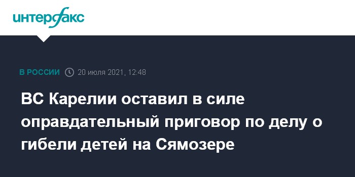 ВС Карелии оставил в силе оправдательный приговор по делу о гибели детей на Сямозере