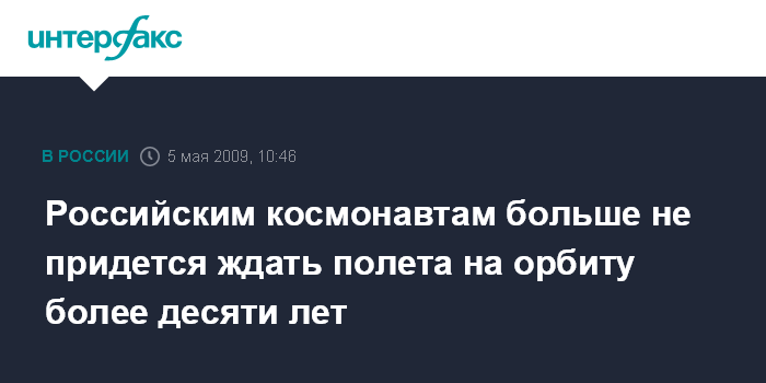 Москва. 5 мая. INTERFAX.RU - Космонавтам из российского отряда, которые сейчас ожидают своей очереди на полет более 10 лет, больше не придется так долго ждать: начиная с этого года в космосе будет работать расширенный экипаж из шести человек.