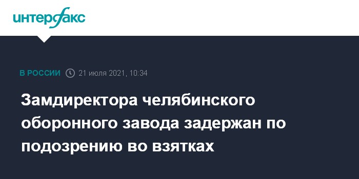 Замдиректора челябинского оборонного завода задержан по подозрению во взятках