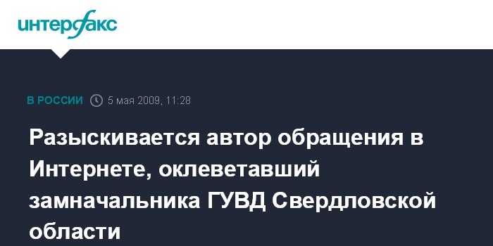 Разыскивается автор обращения в Интернете, оклеветавший замначальника ГУВД Свердловской области