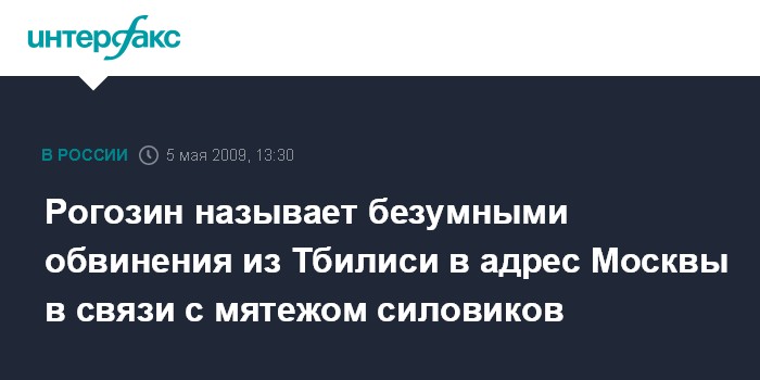 Рогозин называет безумными обвинения из Тбилиси в адрес Москвы в связи с мятежом силовиков
