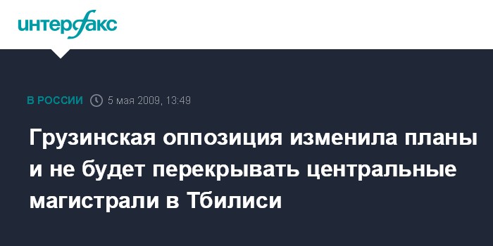 Москва. 5 мая. INTERFAX.RU - Оппозиция Грузии отложила намеченную на вторник акцию по блокированию центральных магистралей в Тбилиси.