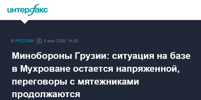 Москва. 5 мая. INTERFAX.RU - Министр обороны Грузии Давид Сихарулидзе, находящийся в Мухровани, где во вторник начался мятеж в бронетанковом батальоне, назвал ситуацию напряженной.