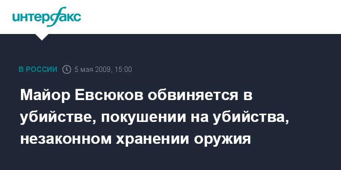 Майор Евсюков обвиняется в убийстве, покушении на убийства, незаконном хранении оружия