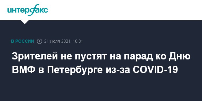 Москва. 21 июля. INTERFAX.RU - Главный военно-морской парад ко Дню Военно-морского флота в Петербурге 25 июля пройдет без зрителей, сообщила главный санитарный врач города Наталия Башкетова в видеообращении.