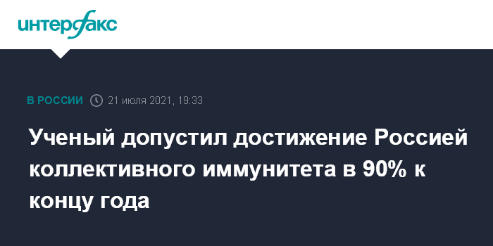 "90% населения должны обладать иммунитетом... Эта доля будет складываться из числа тех, кто переболел, кто вакцинировался, и тех, кто переболел бессимптомно... До конца года (этого добиться - ИФ) вполне реально", - сказал Тотолян.