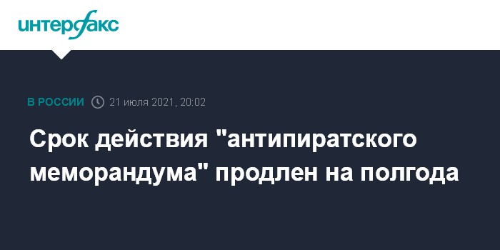 "21 июля на площадке Роскомнадзора состоялось заочное заседание участников Меморандума о сотрудничестве в сфере охраны исключительных прав в эпоху развития цифровых технологий. Представители отрасли единогласно решили продлить действие "антипиратского меморандума" до 1 февраля 2022 года", - говорится в сообщении.