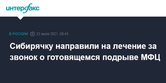 Сибирячку направили на лечение за звонок о готовящемся подрыве МФЦ