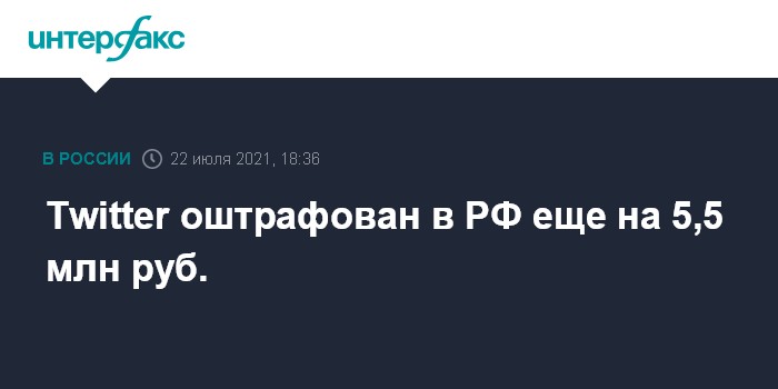 Twitter оштрафован в РФ еще на 5,5 млн руб.