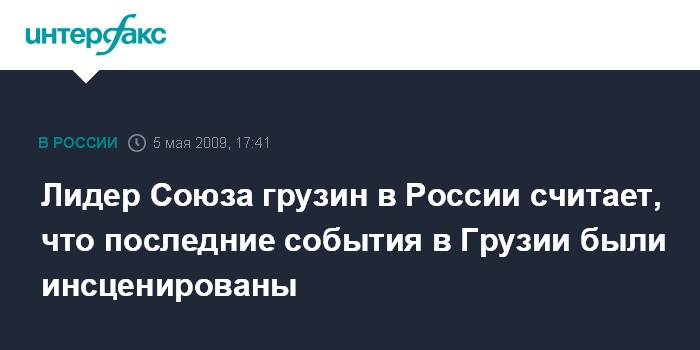 Москва. 5 мая. INTERFAX.RU - События в Грузии, представленные режимом Саакашвили как попытка военного мятежа, за которым стоит Россия, являются инсценировкой, считает президент Союза грузин в России Михаил Хубутия.