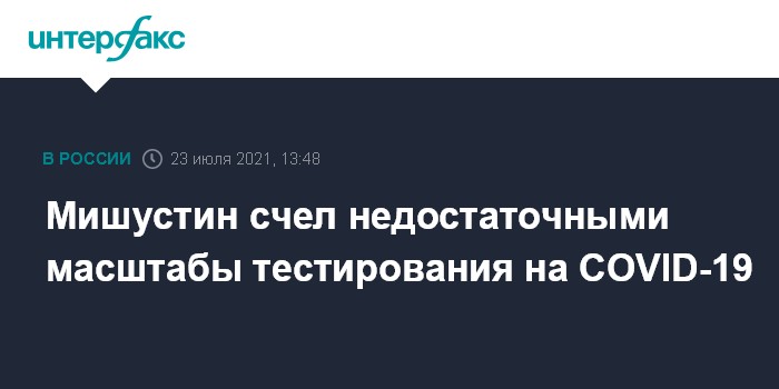 Москва. 23 июля. INTERFAX.RU - Премьер-министр Михаил Мишустин заявил, что в отдельных регионах уровень тестирования на коронавирус недостаточный, и потребовал увеличить его масштабы. Он сказал это на заседании президиума координационного совета по борьбе с коронавирусом.
