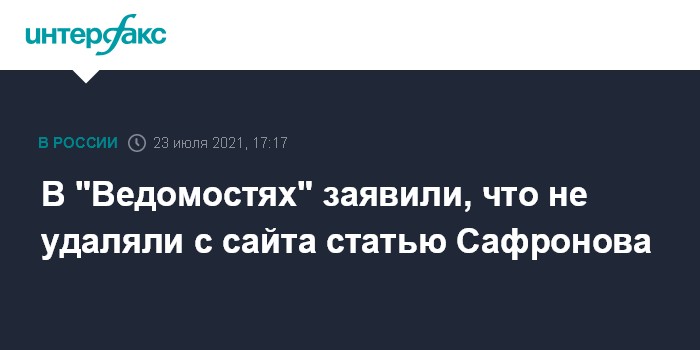 В "Ведомостях" заявили, что не удаляли с сайта статью Сафронова