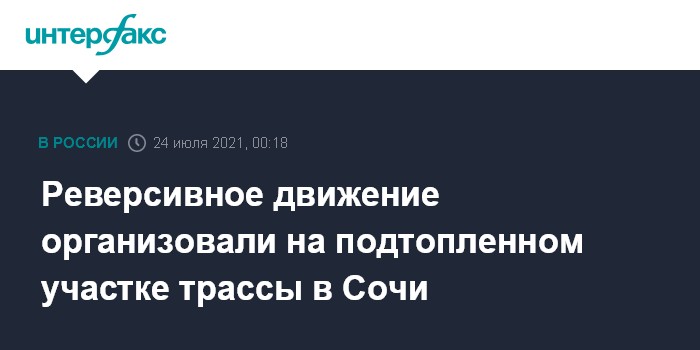 Москва. 24 июля. INTERFAX.RU - На участке федеральной трассы А -147 Джубга - Сочи, подтопленном залповым ливнем, в обих направлениях установлено реверсивное автомобильное движение.