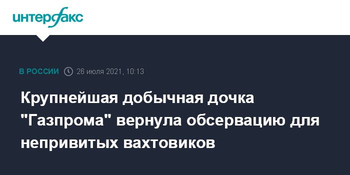 Крупнейшая добычная дочка "Газпрома" вернула обсервацию для непривитых вахтовиков