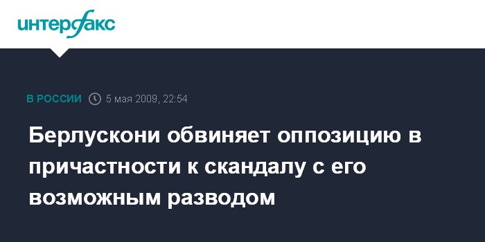 Рим. 5 мая. ИНТЕРФАКС - Председатель Совета министров Италии Сильвио Берлускони заявил во вторник, что крупный скандал, разгоревшийся вокруг него и его возможного развода, спровоцирован оппозицией.