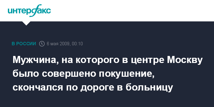Москва. 6 мая. ИНТЕРФАКС-МОСКВА - Скончался мужчина, на которого было совершено покушение в центре Москвы во вторник вечером.