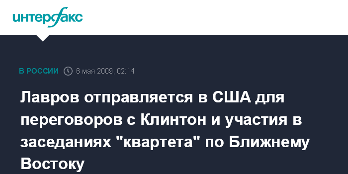 Лавров отправляется в США для переговоров с Клинтон и участия в заседаниях "квартета" по Ближнему Востоку