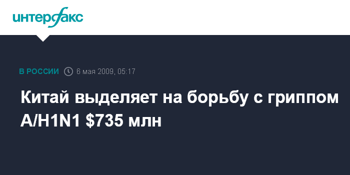 Китай выделяет на борьбу с гриппом A/H1N1 $735 млн