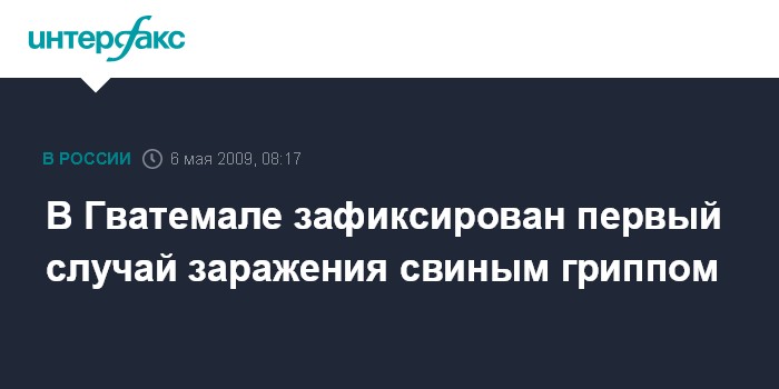Москва. 6 мая. INTERFAX.RU - Министр здравоохранения Гватемалы Сельсо Сересо объявил, что врачи выявили первый в стране случай заражения вирусом гриппа A/H1N1, также известного как "свиной грипп".
