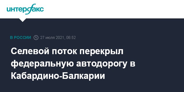 Москва. 27 июля. INTERFAX.RU - Движение по федеральной трассе А-158 "Прохладный-Баксан-Азау" перекрыто в Кабардино-Балкарии из-за схода селевого потока на проезжую часть, сообщили "Интерфаксу" в главном управлении МЧС России по КБР во вторник.