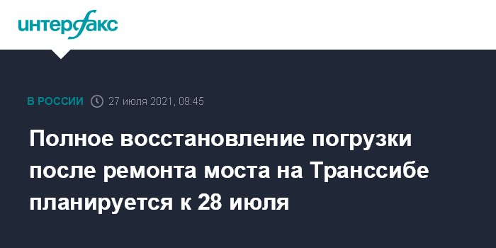 Полное восстановление погрузки после ремонта моста на Транссибе планируется к 28 июля