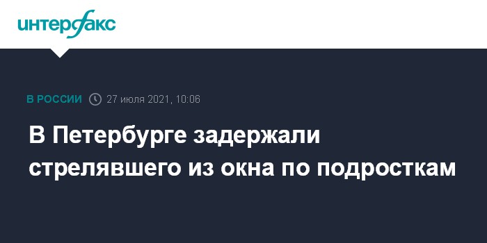 Москва. 27 июля. INTERFAX.RU - В Петербурге задержали местного жителя, которого подозревают в стрельбе по людям из пневматического пистолета, сообщили в пресс-службе управления МВД по региону. Пострадали два подростка, которым 16 и 17 лет, они получили ушибы.