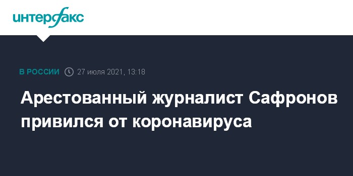 Арестованный журналист Сафронов привился от коронавируса