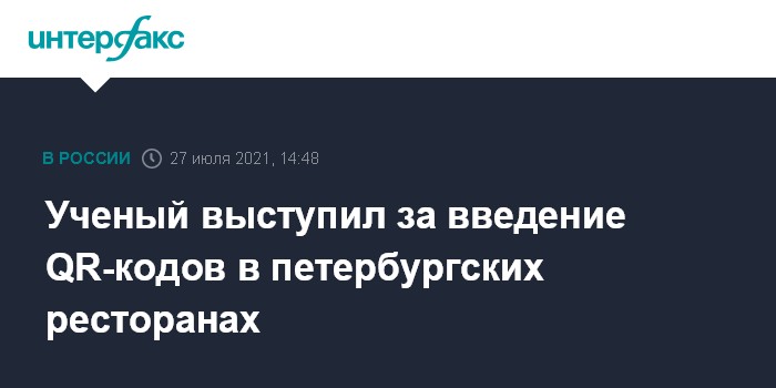 Москва. 27 июля. INTERFAX.RU - Руководитель петербургского НИИ эпидемиологии и микробиологии имени Пастера Арег Тотолян считает необходимым ввести QR-коды в петербургских ресторанах и кафе по примеру Москвы.