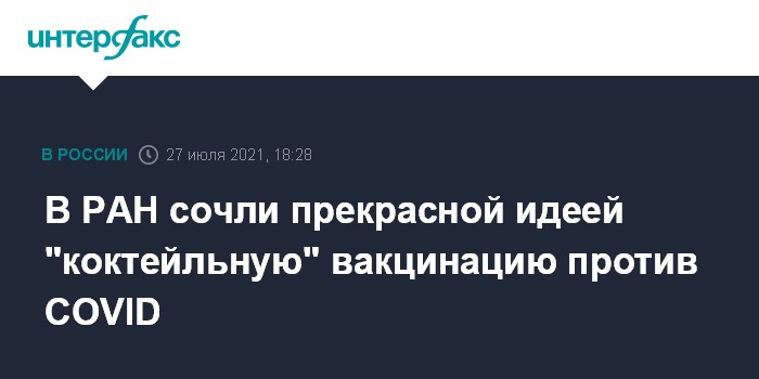 В РАН сочли прекрасной идеей "коктейльную" вакцинацию против COVID