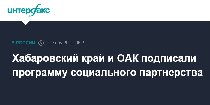 Москва. 28 июля. INTERFAX.RU - Правительство Хабаровского края и ПАО "Объединенная авиастроительная корпорация" подписали программу социального партнерства, сообщил глава ОАК Юрий Слюсарь.