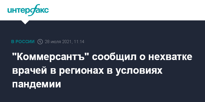 Москва. 28 июля. INTERFAX.RU - Власти отдельных регионов признали, что пандемия обострила дефицит медицинских кадров, пишет "Коммерсантъ". По оценке издания, врачей не хватает в большинстве регионов, а особо остро дефицит ощущается в службе скорой помощи.