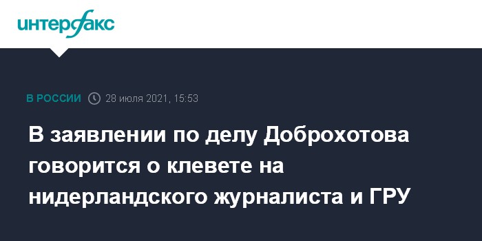 В заявлении по делу Доброхотова говорится о клевете на нидерландского журналиста и ГРУ