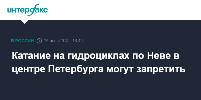 Москва. 28 июля. INTERFAX.RU - Власти Петербурга могут наложить запрет на плавание на водных мотоциклах по Неве в центре города, следует из документа, опубликованного на официальном сайте городской администрации.