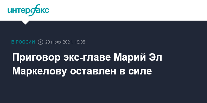 Приговор экс-главе Марий Эл Маркелову оставлен в силе