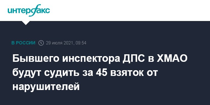 Бывшего инспектора ДПС в ХМАО будут судить за 45 взяток от нарушителей