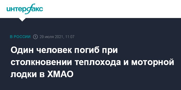 Москва. 29 июля. INTERFAX.RU - Теплоход и моторная лодка столкнулись на реке Конда в Ханты-Мансийском автономном округе - Югре, погиб один человек. Об этом сообщает пресс-служба Уральской транспортной прокуратуры.