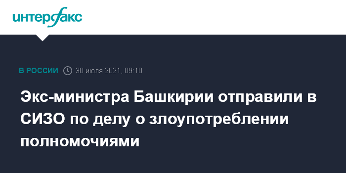 Экс-министра Башкирии отправили в СИЗО по делу о злоупотреблении полномочиями