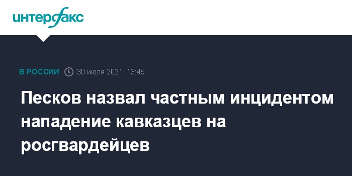 "Какой-то специальной информации об этом инциденте мы не имеем, эти вопросы находятся в оперативных сводках органов внутренних дел и касаются нашей Росгвардии", - добавил Песков.