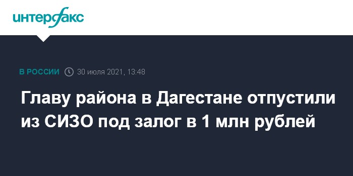Главу района в Дагестане отпустили из СИЗО под залог в 1 млн рублей