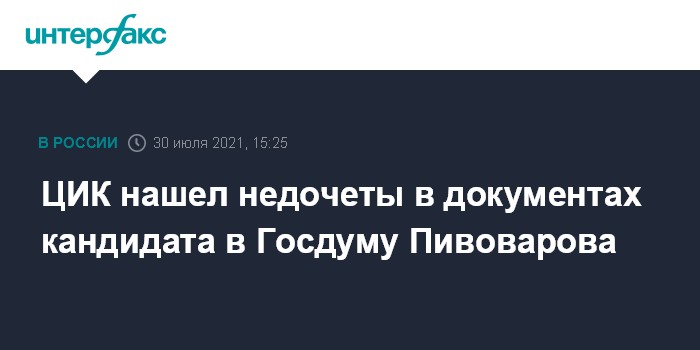 ЦИК нашел недочеты в документах кандидата в Госдуму Пивоварова