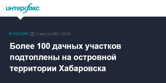 "В результате подъема воды на островной территории Хабаровска подтоплены свыше 110 дачных участков", - говорится в сообщении.