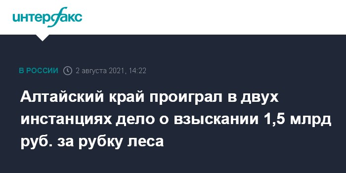 Алтайский край проиграл в двух инстанциях дело о взыскании 1,5 млрд руб. за рубку леса