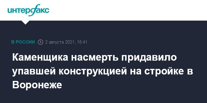 Каменщика насмерть придавило упавшей конструкцией на стройке в Воронеже