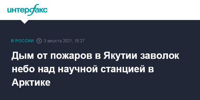 Москва. 3 августа. INTERFAX.RU - Дым от лесных пожаров в Якутии и на Таймыре добрался до научных станций в Арктике, сообщается в телеграм-канале НИИ Арктики и Антарктики (ААНИИ).