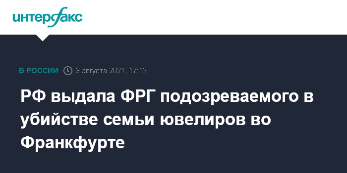 РФ выдала ФРГ подозреваемого в убийстве семьи ювелиров во Франкфурте