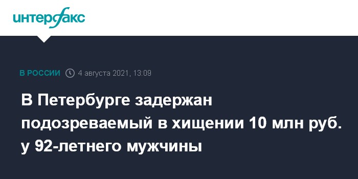 В Петербурге задержан подозреваемый в хищении 10 млн руб. у 92-летнего мужчины