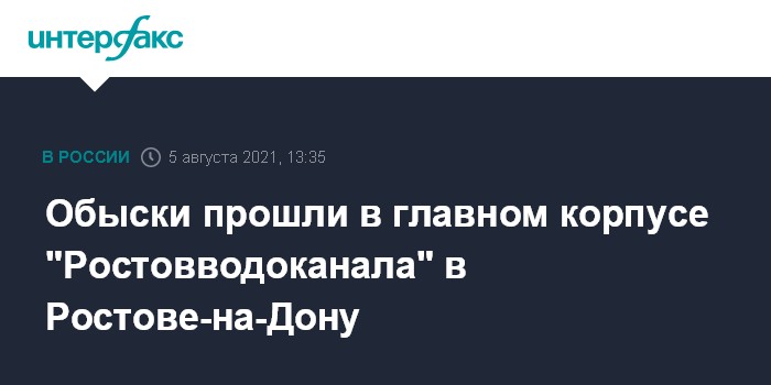 Москва. 5 августа. INTERFAX.RU - Правоохранительные органы проводят обыски и выемку документов в здании "Ростовводоканала" на улице Максима Горького в Ростове-на-Дону, сообщил "Интерфаксу" информированный источник.